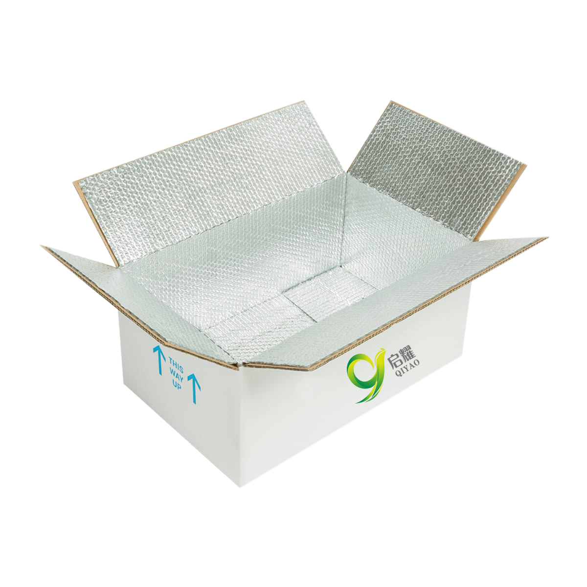 2. The inner and outer walls of the insulation layer are coated with aluminum coating, creating a silver shiny waterproof insulation carton, to make up for the traditional carton soaked by water or steam and damage the defects of the box, to ensure the original characteristics of the contents of the box. Traditional cartons in the transport of frozen food, there are fatal defects, because frozen food taken out of the cold storage encountered outside hot air will produce condensate, soak cartons, resulting in cartons soft or even broken. The inner and outer layer aluminum foil film of the excellent cold insulation carton has waterproof function, and the insulation layer is an rubber foaming material with moisture resistance, which will not wet the box body and cause the box to break.