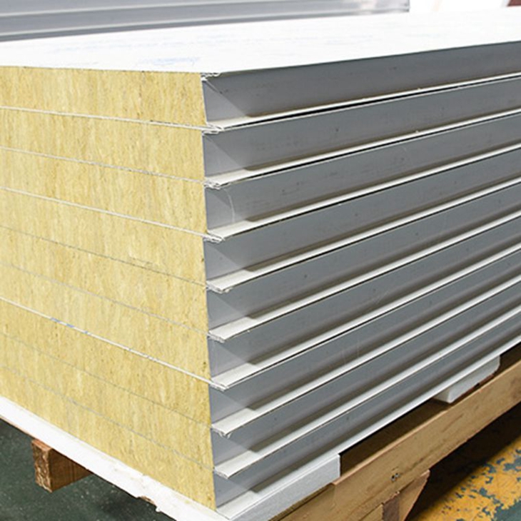 采用中高密度巖棉為芯材,鍍鋅(不銹鋼)或彩涂鋼板為面層結(jié)合高強(qiáng)度粘劑,通過高速連續(xù)自