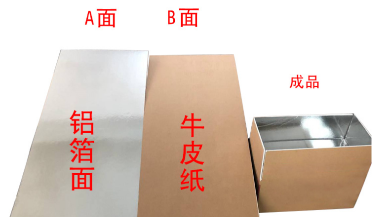 鋁箔紙板由牛皮紙和鋁箔紙復(fù)合在PS板芯而成,板芯達(dá)到220g/m2,抗低溫,抗摔能力強(qiáng),不易變形,冷鏈傳輸不分層。
